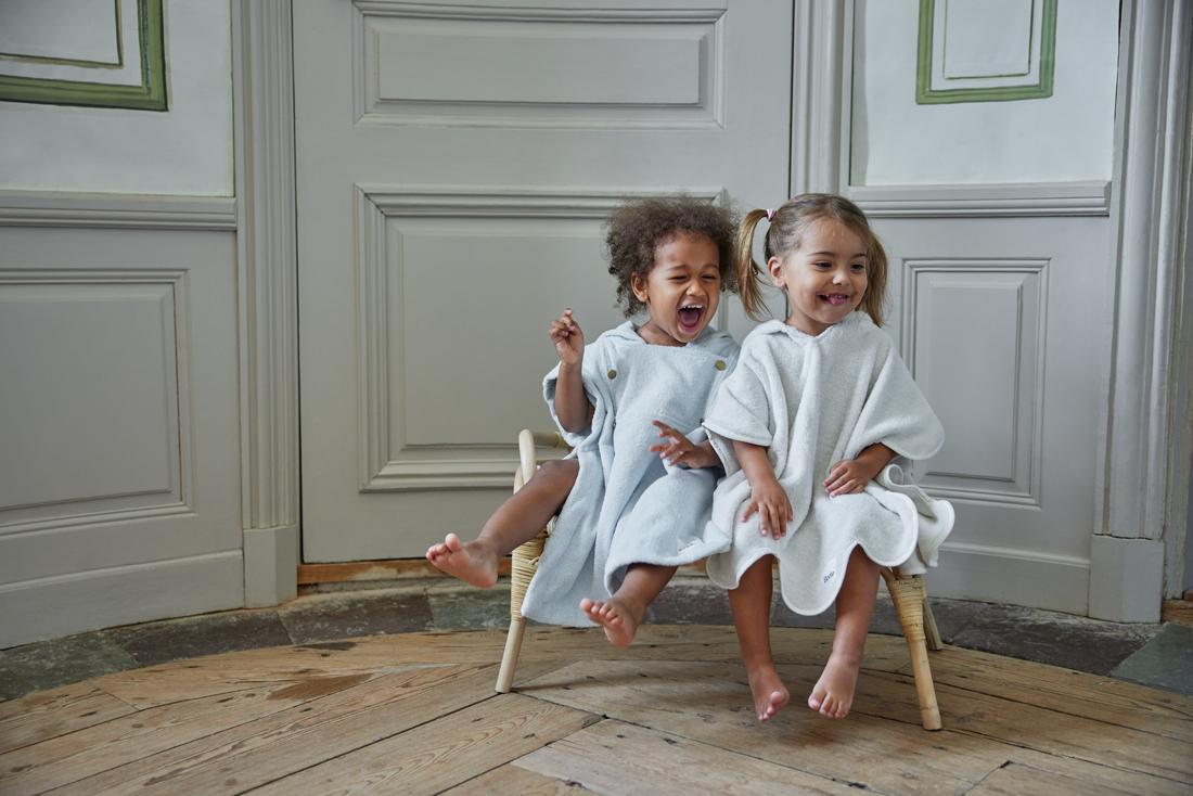 The bath poncho is designed to fit children between 1 and 3 years old. It works just as well at home, by the pool, or at the beach, and is perfect to put on after a bath for comfort and a sense of security.
